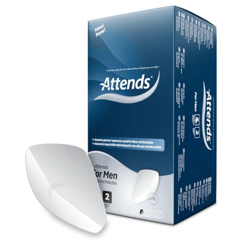 פדים Attends For Men Level 2 הם פדים דקים מאוד בעלי צורה אנטומית שתוכננו במיוחד לגברים הסובלים מבריחת שתן קלה מאוד.
